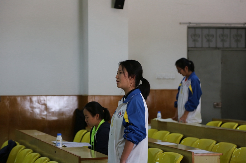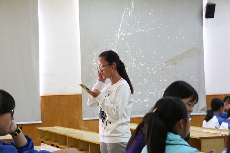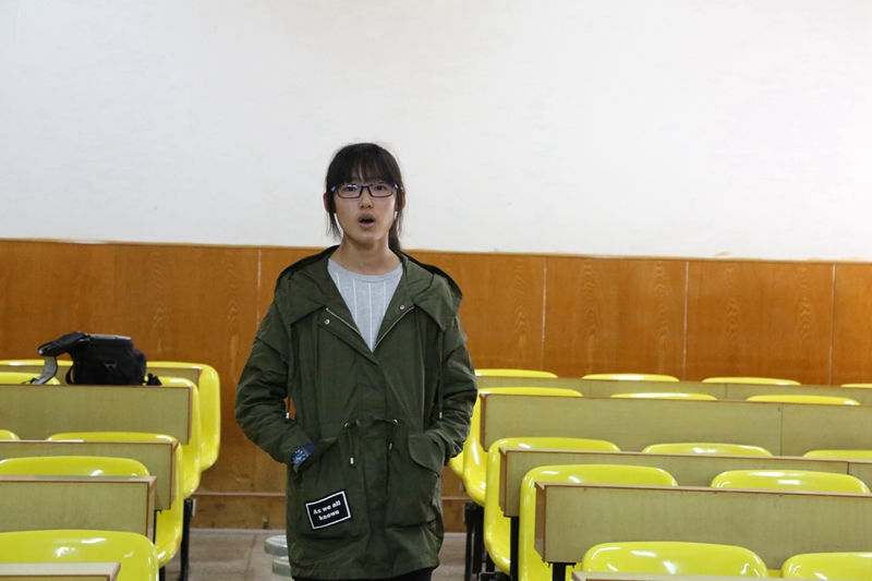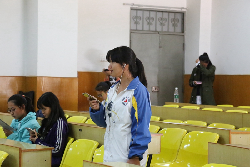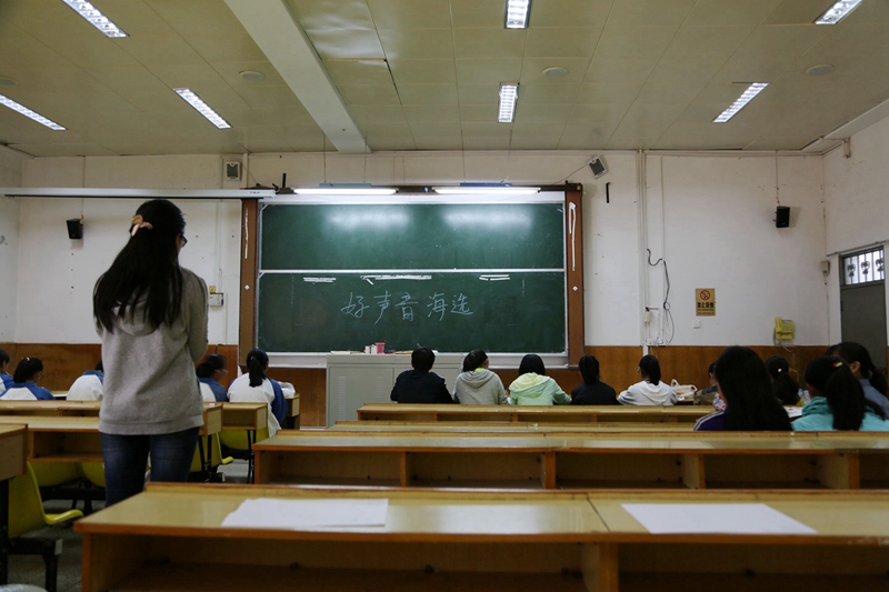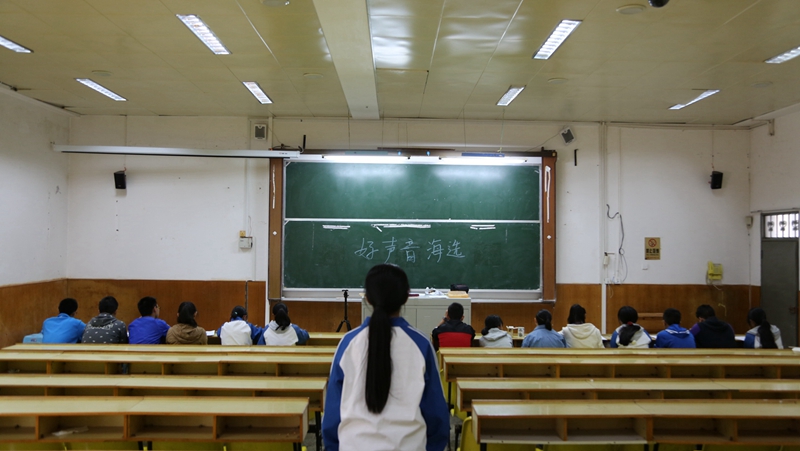 一位女同学入了场,年轻的脸上洋溢的动人的光彩。微微一笑嘴唇翘起浅浅的幅度,流畅的歌声便倾泻而出,跳跃的音符在空气中旋转着,前排的评委们专注而用心,静谧的午后因这场精心打造的海选而显得熠熠生辉。选手们满怀信心地进入又满意欢跃而出。