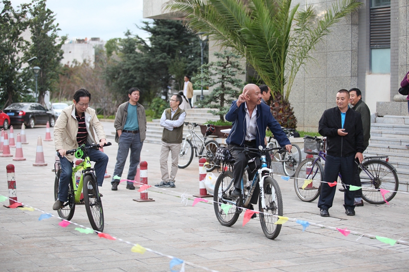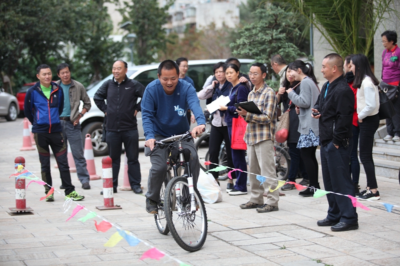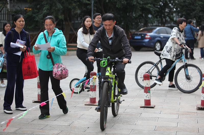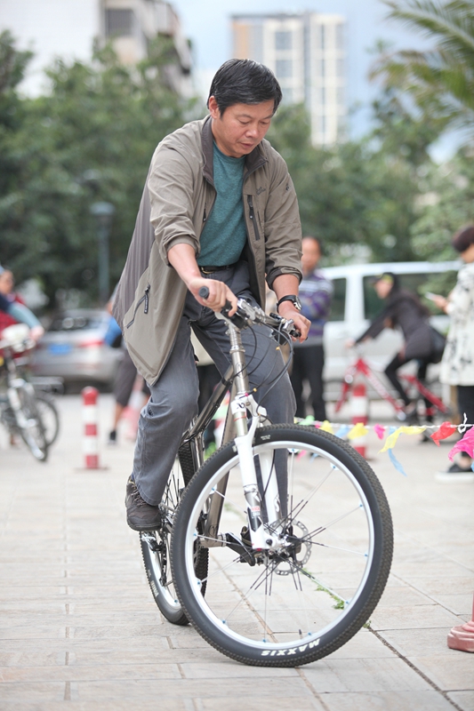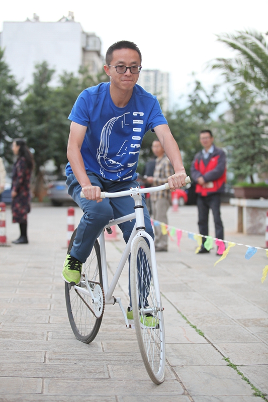 2016年10月26日下午5:30,时间慢些,再慢些流逝,我校教师自行车慢骑比赛正在进行。“成绩3秒!”长长的30米赛道,这个意外诞生的最快纪录,引得现场一片欢笑声。“成绩2分50秒!”短短的30米赛道,凭借高超的技术,最慢的纪录瞬间定格。
