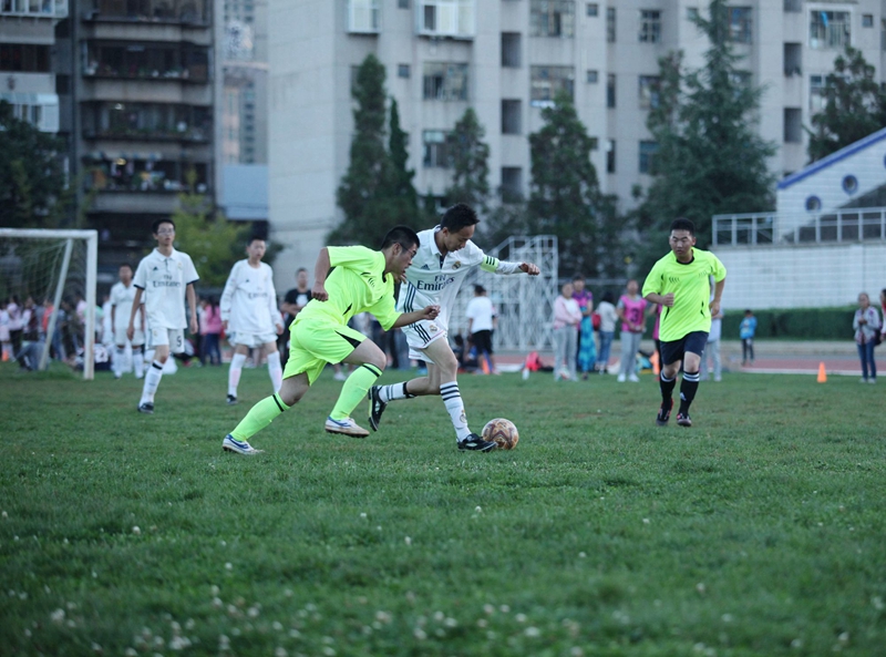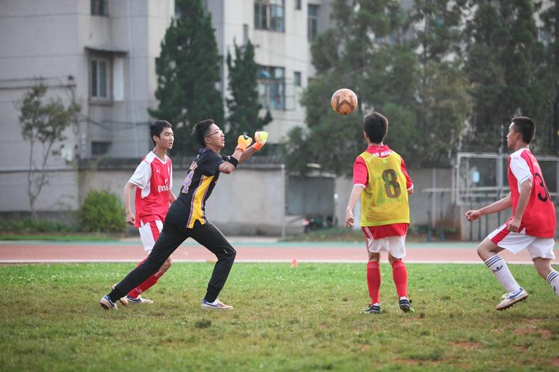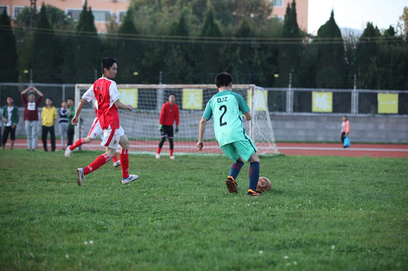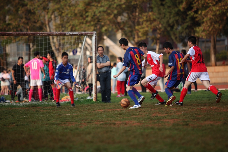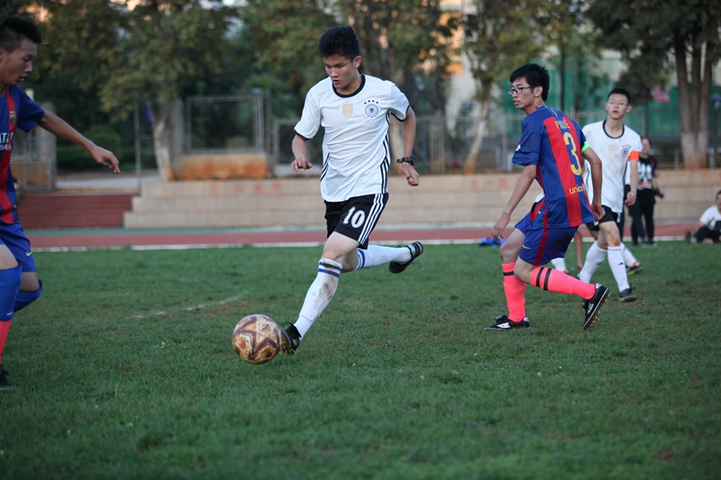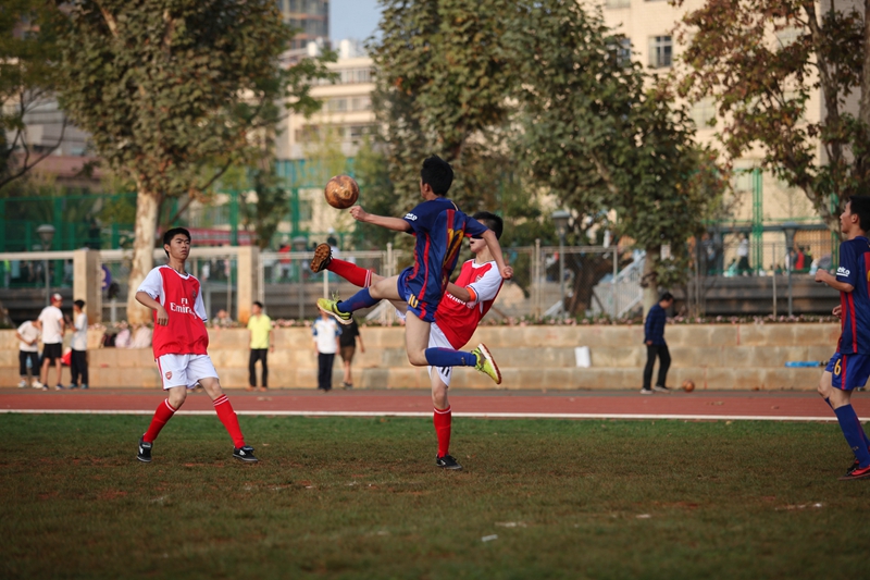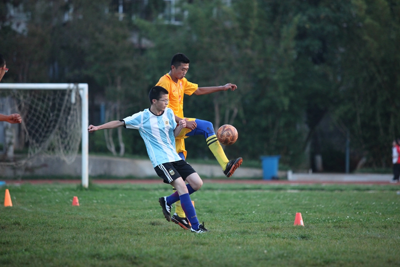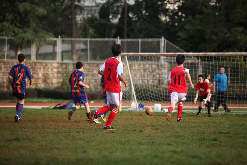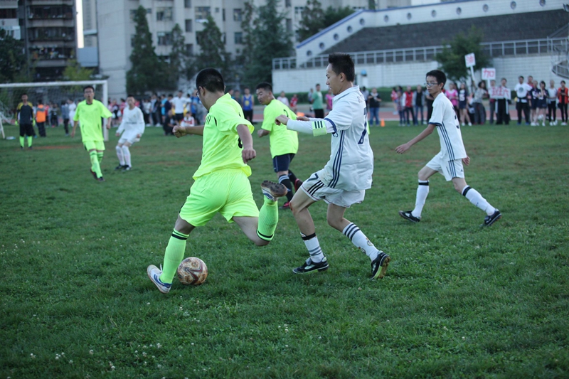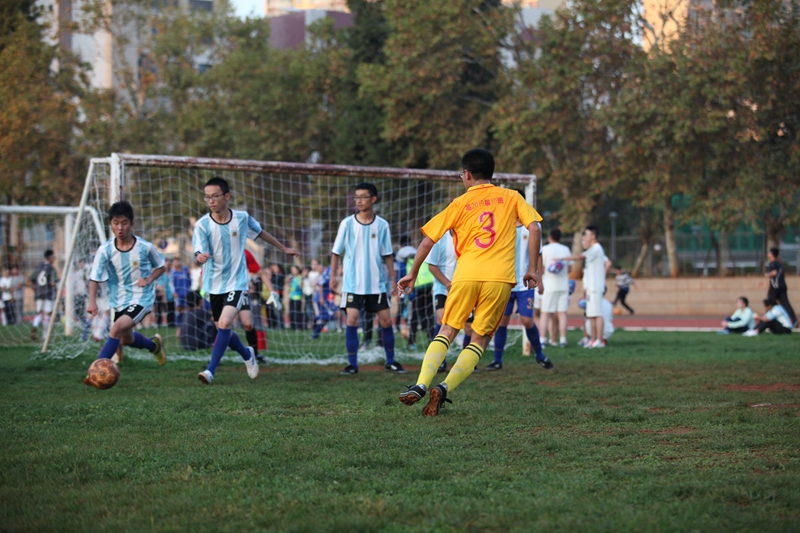 夕阳抚过金黄的树叶,留下树影斑驳。斑驳树影旁,时有身影疾驰而过,那正是绿茵场上奔跑的少年。尽管训练时间紧迫,肩负赢得班级荣誉的重任,队员们依旧从容不迫。赛前,留给同学们的,是他们坚定的背影。
