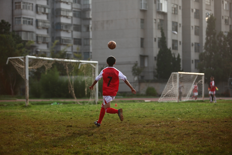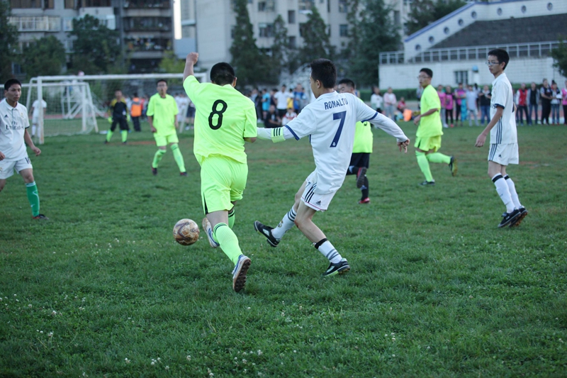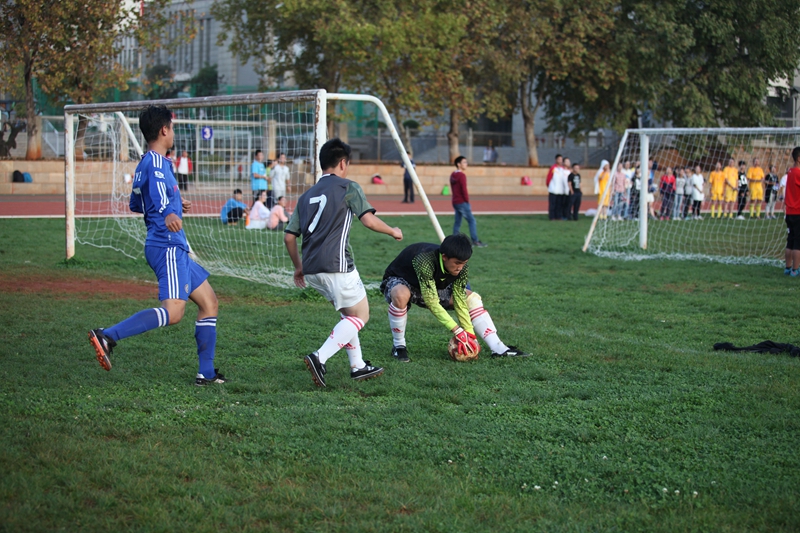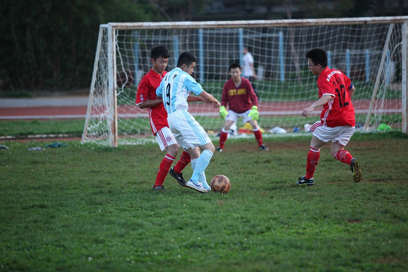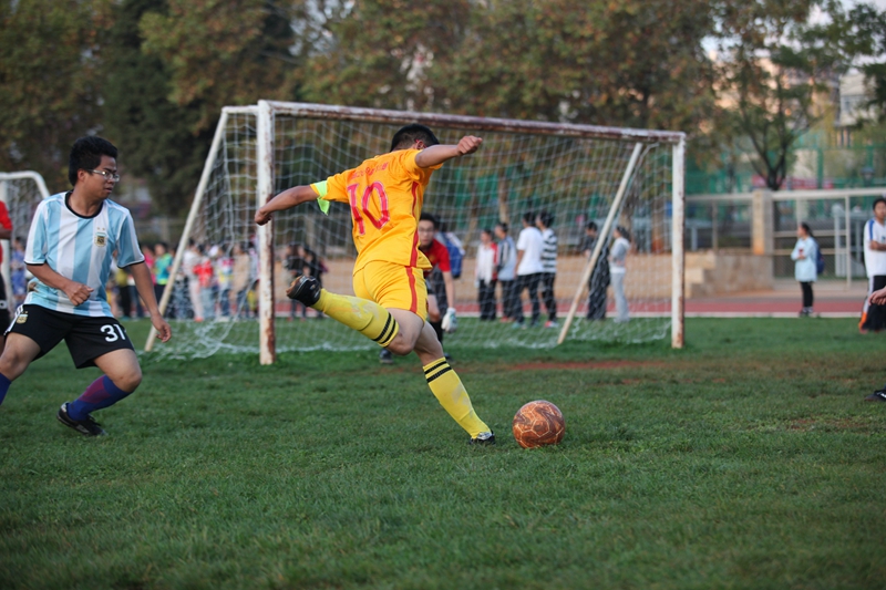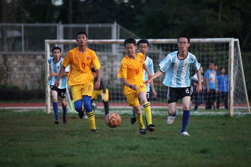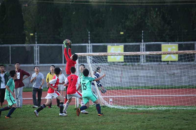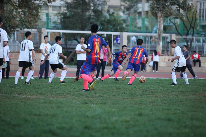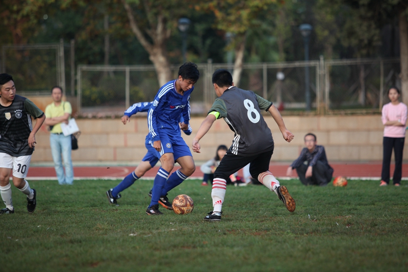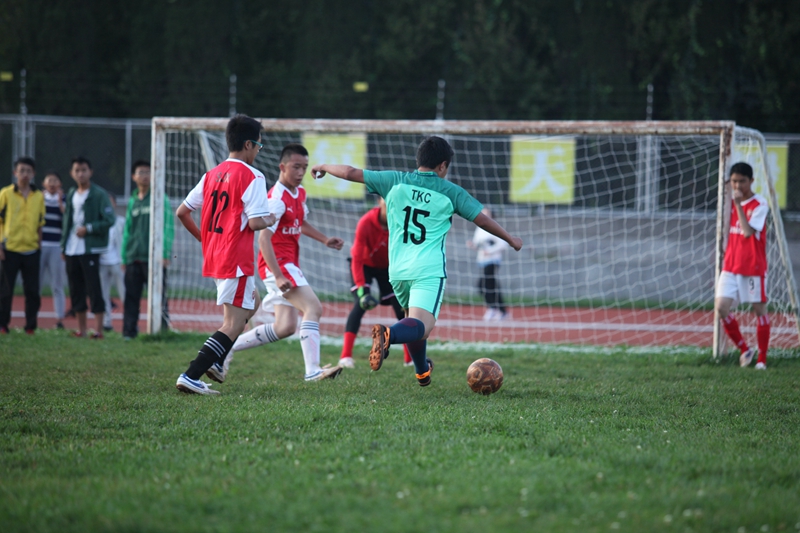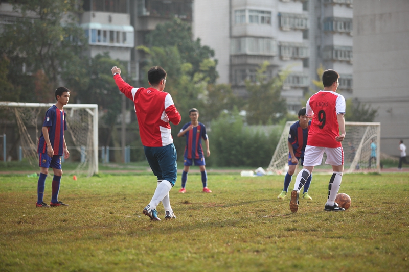 夕阳抚过金黄的树叶,留下树影斑驳。斑驳树影旁,时有身影疾驰而过,那正是绿茵场上奔跑的少年。尽管训练时间紧迫,肩负赢得班级荣誉的重任,队员们依旧从容不迫。赛前,留给同学们的,是他们坚定的背影。