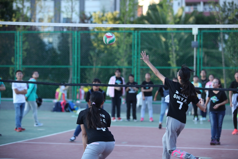 场上的队员们潇洒恣意,而这样轻松自如的背后,是队员们平时刻苦的训练。每天中午,即使烈日当空,四块排球场也不曾闲置。从刚开始的畏惧接球,到后来出彩的团队配合,是对班级的责任感使队员们不曾松懈。