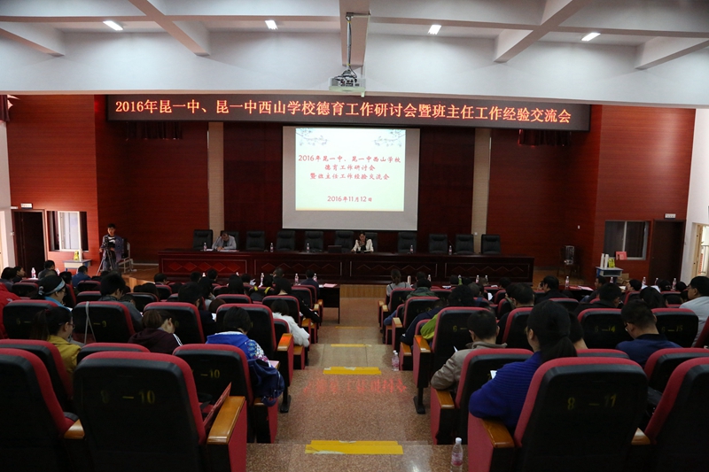 2016年11月12日上午,昆一中、昆一中西山学校德育工作研讨会暨班主任工作经验交流会在昆一中西山学校学术交流中心举行。昆一中党委书记、昆一中西山学校校长高富英首先致辞。高书记表示,把一中校本部和昆一中西山学校的全体干部和班主任老师聚集在一起,共同举办这次德育工作研讨会暨班主任工作经验交流会,对于提高班主任工作的能力和水平,进一步增强德育工作的针对性、实效性有着十分重要的意义。随后,昆一中和昆一中西山学校七位优秀班主任相继分享了他们的治班之策和育人之道。他们分别根据自己的班级情况和工作经验,以一个个真实、鲜活的典型案例,从不同角度,诠释了自己带班的理念和风格。让与会者从中感悟到了一名光荣的班主任高度的责任感和崇高的职业追求,领略到了各位班主任不同的工作艺术,也感受到了班主任工作中的辛劳与甘甜,更品味到了班主任的教育智慧和职业幸福。