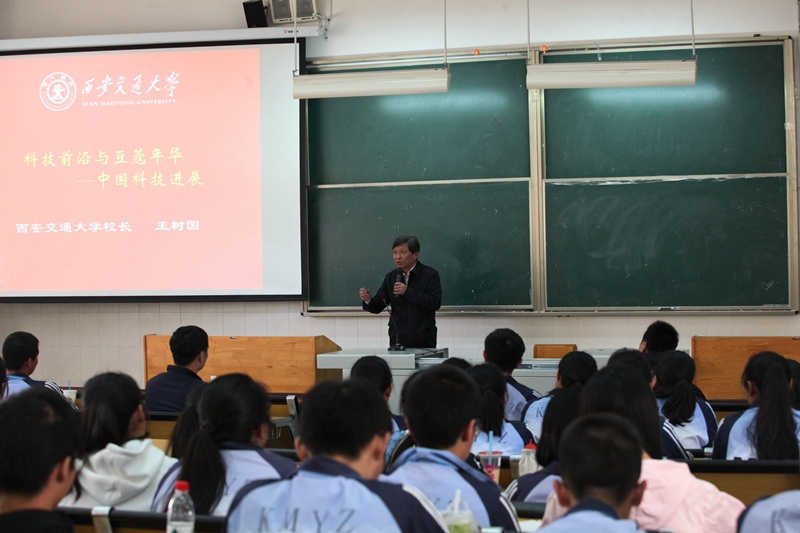 2016年11月17日,西安交通大学校长王树国率领西安交通大学校长助理洪军、西安交通大学法学院书记王保民、西安交通大学招生办公室副主任吴梦秋一行莅临我校。赵校长陪同西安交通大学校长王树国一行参观校园。随后西安交大王树国校长在3号教学楼多媒体教室为昆华学子带来了一场科普讲座——《科技前沿与豆蔻年华——中国科技发展》。