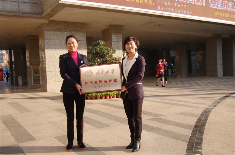 为进一步巩固和加强我校与全国各大高校的交流和沟通,提升学校影响力,11月21日南开大学招生办公室主任邵庆辉应邀参加我校110周年校庆,同时,我校教学副校长张丽娅代表学校与邵庆辉主任签署了《南开大学优质生源基地协议书》,并举行了优质生源基地授匾仪式。
