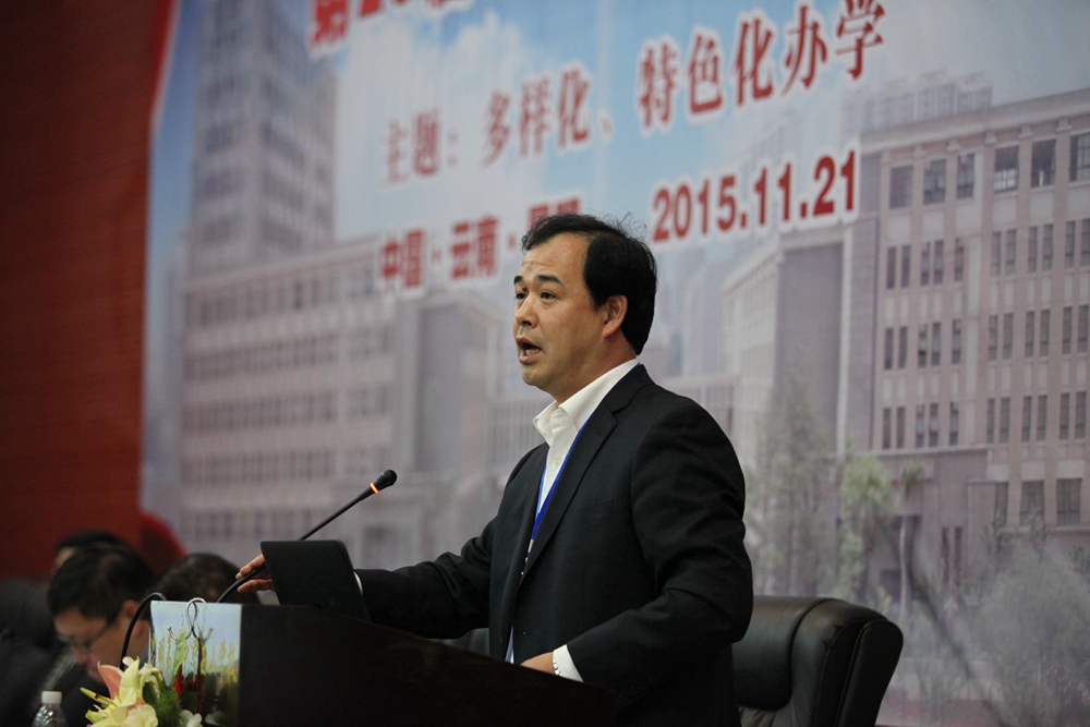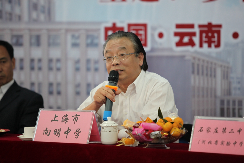 此次论坛由天津实验中学主持,广东实验中学校长致辞,昆一中、石家庄二中、广东实验中学、吉林实验中学分别作了主题发言,各校就办学经验与成果、办学中出现的问题、学校特色优势、学校未来的发展等大家关心的问题进行了深入的交流。作为昆一中110年校庆的重点活动之一,昆一中校长赵灿东的发言备受关注,赵灿东首先表达了对各位远道而来的朋友欢迎和感谢之情,继而通过昆一中光荣的历史文化“抛砖引玉”,引出昆一中“办学模式的多元化”“课程建设的多元化”“教师培养的多元化”“学生培养的多元化”四个方面的情况,并和同行进行了交流,现场掌声不断。与此同时,赵校长也提出了一些实际的问题:“校园安全问题”“一校多址,学校如何进行文化传承和干部培养”“如何调动教师积极性”,这些问题引起了现场很多其他兄弟学校的深思。