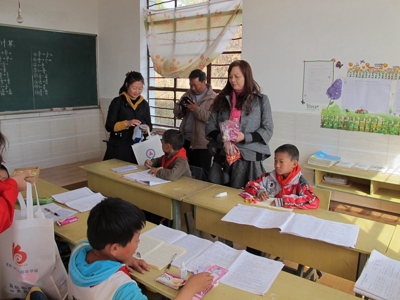 2015年11月26日,农工党昆明市委昆一中支部的老师们带着农工党昆明市委和昆一中党委的殷殷期望和浓浓的关爱,一行十余人奔波了将近4个小时,来到位于楚雄彝族自治州武定县插甸镇的水城小学,进行了为期一天的学习交流帮扶活动。在学习交流中,老师们进一步了解到,水城小学离县城有80余公里,山高水远,交通不便,长期的贫困使这里大部分的山民前往外乡打工挣钱,催生了不少的留守儿童。在这所仅有35名学生的小学里,一到三年级的学生中,有16名学生长期住校,生活自理。但是在这样艰苦的条件下,学生们没有放弃对知识的渴望。尽管大部分的学生至今仍没有到过县城,但他们从来没有放弃过对外面世界的向往。