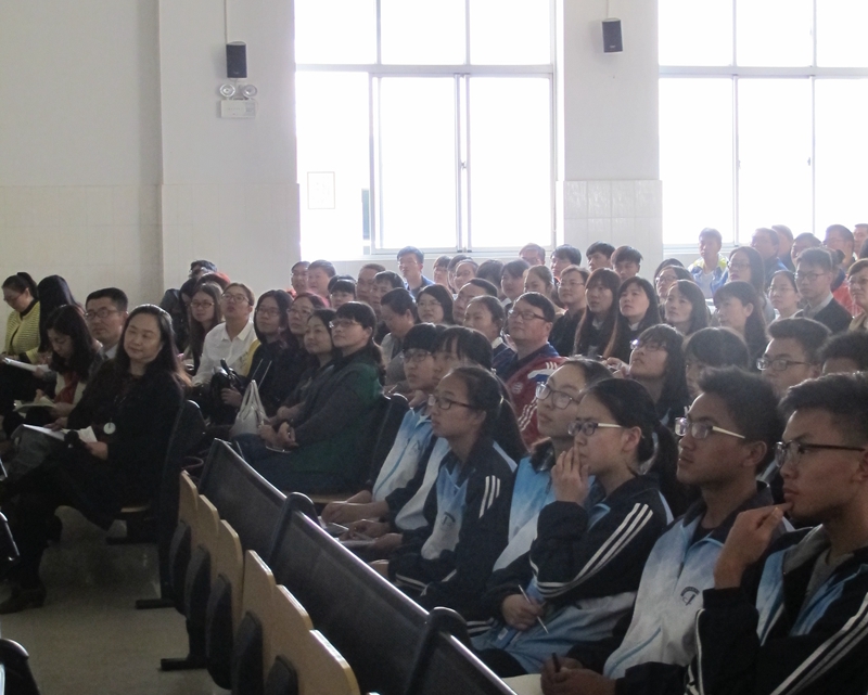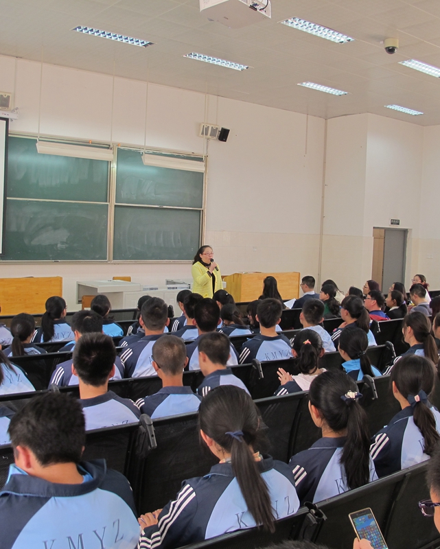 2016年3月22日下午,云南省昆明市2016年骨干班主任培训班一百余位学员到我校观摩学习。我校鲁开红老师、聂菁老师、夏耘老师、谢梅老师为培训班学员做了《青春飞扬 逐梦昆华》的专题讲座。丁洁老师为培训班学员做了《阳光心态 笑对生活》的主题班会。我校五位老师的讲座,视角新颖,幽默风趣,实效性强,百余位骨干班主任培训班学员听得兴味盎然。