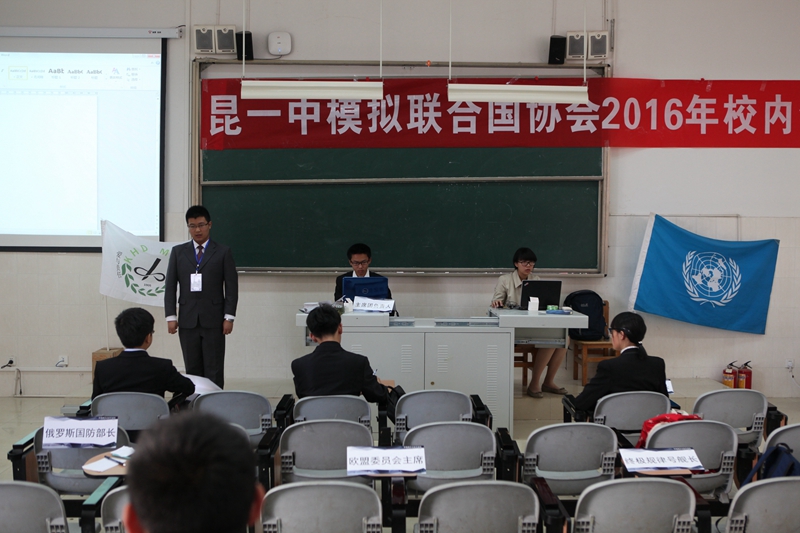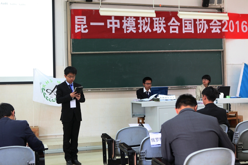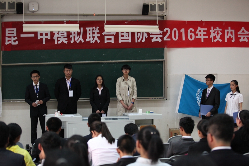 这是上周末发生在我校的一幕,4月16日-17日,我校模拟联合国协会2016年第一届校内会在成功举办。这次会议邀请到了云师大附中、云师大实验中学、昆三中、昆八中、昆十中(白塔和求实校区)、昆女中等八所学校的主席、代表和志愿者,以及来自云大附中的观察员共计100多人,共同就一些世界性的议题发表意见建议,展开讨论辩论。
