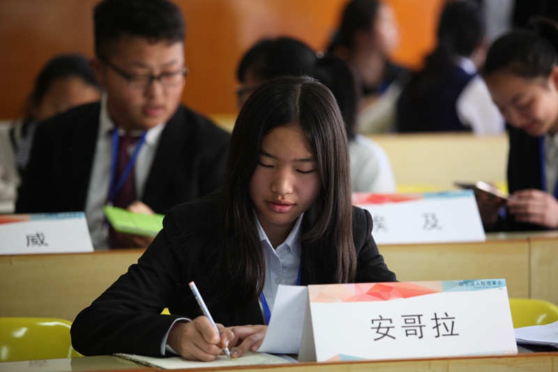 ,以刘慈欣获“雨果奖”的科幻文学作品《三体》为背景展开;一个联合国人权理事会(Human Rights Council,HRC),讨论如何保障未成年人权益。别看参与者只是一群十多岁的中学生,但无论从会场布置还是议题设置都有模有样。此外值得一提的是其中的思想和语音,虽然是学生声音,却有放眼世界的眼光。他们畅所欲言,在青葱岁月里刮起一阵强烈的头脑风暴。