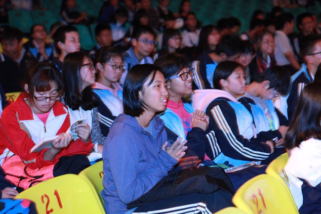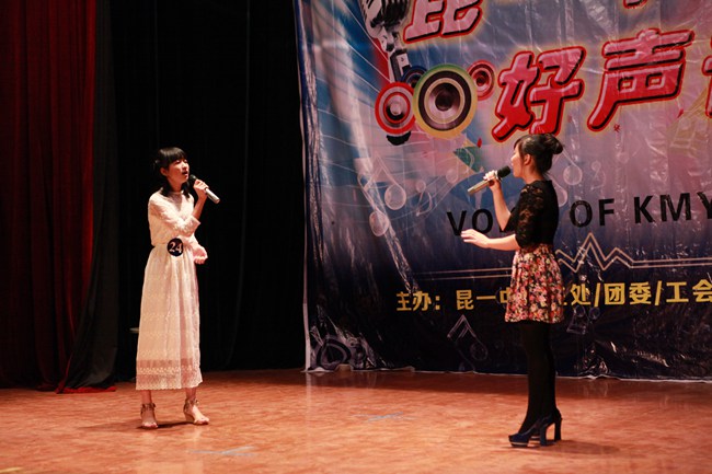 日晚,一中好声音复赛在学校报告厅举行。云南艺术学院的尹伟、曹智武、张文君、张依涵四位老师受邀担任评委。师生同台,三十余组选手先后登台演唱,或深情款款,或激情澎湃。荧光点点,现场的观众陶醉在选手美妙的歌声中,兴奋地为他们鼓掌呐喊,比赛结束后还在意犹未尽地讨论着选手各具特色的表现。