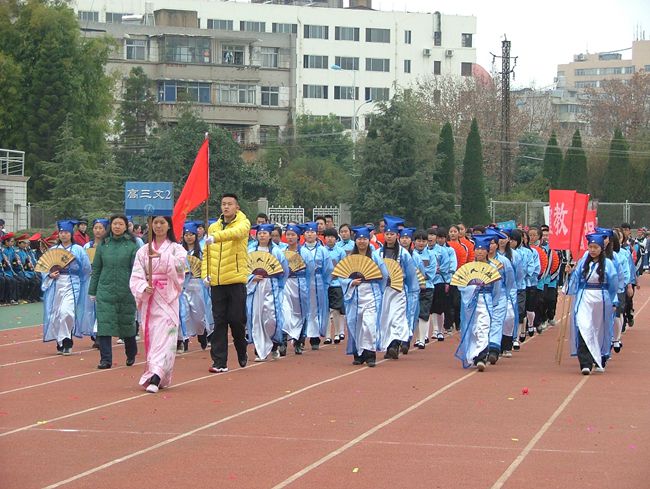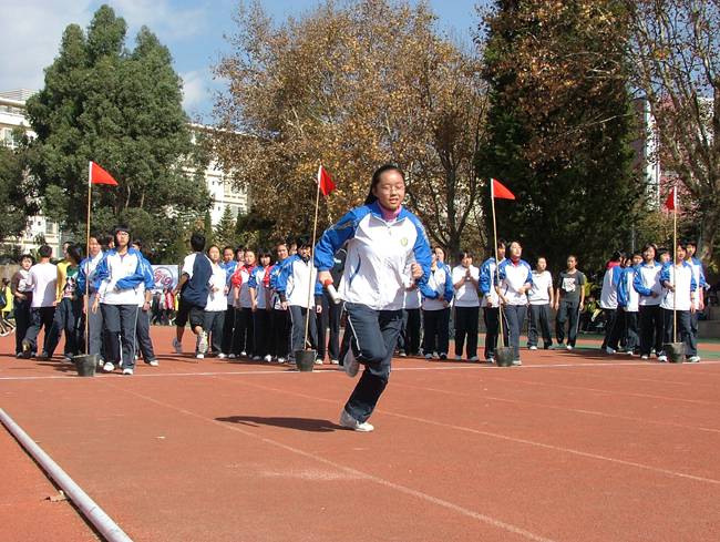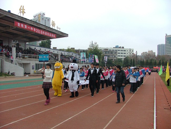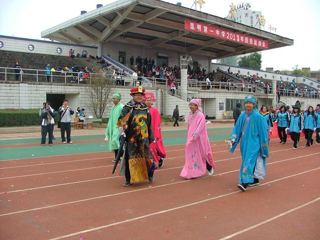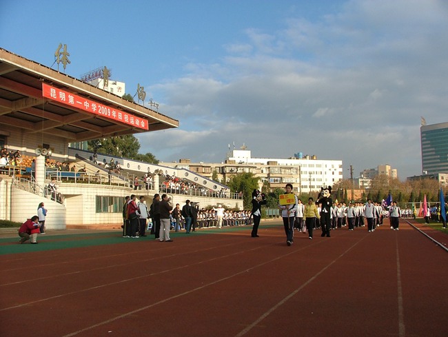 年)的运动会,变化颇多,感慨系之。十年,数届一中学子如云如水,匆匆已别昆华园。可曾有谁,被十年前的煤渣跑道上扬起的烟尘,迷湿了眼睛;可曾有谁,还记得那些跃动在红色跑道上年轻的心跳,涨红的脸庞。运动项目历经增减消长,于是我们再也看不到