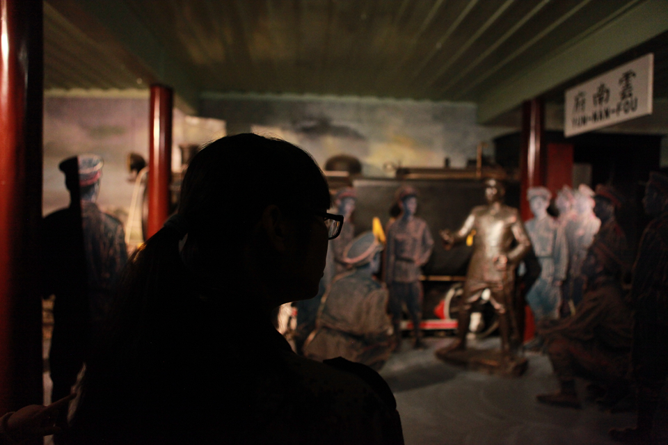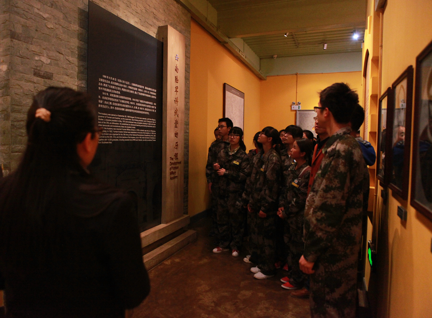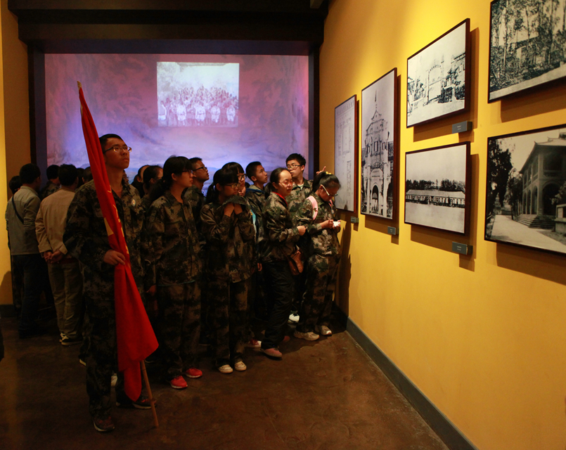 (文:普上鑫 图:王倡剑)金黄色的阳光洒在马路上,2014年11月30日下午,军事组参观了云南陆军讲武堂。云南陆军讲武堂是我国近代三大军校之一,人才辈出,被称为中国革命的熔炉和革命的摇篮。展馆的开始列举了一些出自讲武堂的名将,同学们深受震撼。得知当时的学生要学习军事、几何、化学、国文、英文、法文等课程后,同学们无不感叹他们学术之严谨。来到一幅火车站游行的复原场景前,那一声声广大师生的呐喊仿佛回荡在耳旁。一幅“三操两讲”的训练图,紧张和刻苦的学习过程印刻在画面之中。从军服到革命,浓浓的时代气息,虽然都已消失在历史的长河中,但在参观过程中,我们犹如置身于那个年代。在这次参观中,同学们不仅了解到了云南本土的军事史,同时也燃起了熊熊爱国心。先烈的牺牲和丰功伟绩,我们不能忘记。因此,我们要站在新的高度,把握未来。
