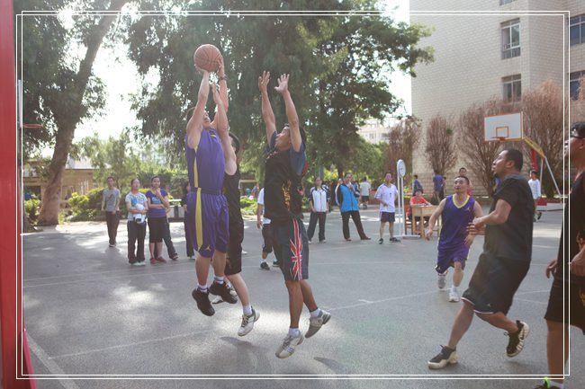2014年6月4日,教职工篮球比赛收官之战在高三冠军队和学校联队之间展开。在之前进行的循环赛中,高三队先后对阵行政、高一、高二、金岸分校四支队伍,豪取四连胜。学校联队由高一、高二、行政三支队伍组成。虽然是表演赛,比赛的激烈程度不亚于循环赛,高三队志在捍卫自己的冠军荣誉,学校联队也奋力冲击,想让高三队初尝败绩。比赛一开始,双方交替领先,比赛几乎陷入了胶着状态。随着学校联队失误不断,高三冠军队接连快攻得分,分差逐渐拉开,高三冠军队巩固并保持了领先优势直至终场哨响。
