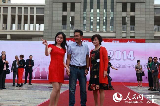 离开昆华园,星散三十年,如今欢聚一堂,浓浓的情谊漾开在雨后新晴的空气里。校友们或两两结对,或三人成群,在人群里寻找着三十年前“同桌的你”,在各个已经陌生的脸庞上寻找曾经稚嫩的容颜和青春的回忆。他们携手踏上了红毯,在“相聚2014”的留言墙上签下了名字。