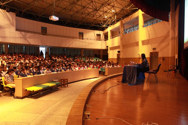 2014年9月22日下午6:40,校医徐丽老师在报告厅为全校住校女生进行了一场青春期保健知识讲座。徐丽老师重点介绍了女生遭遇侵害应该如何进行自我保护,生理期的一些护理常识,以及吃早餐的学问。