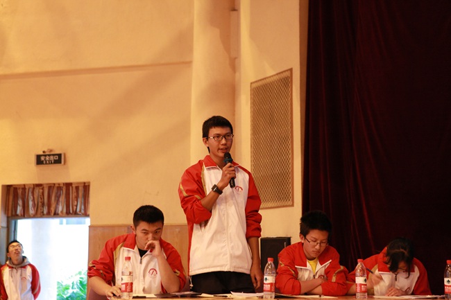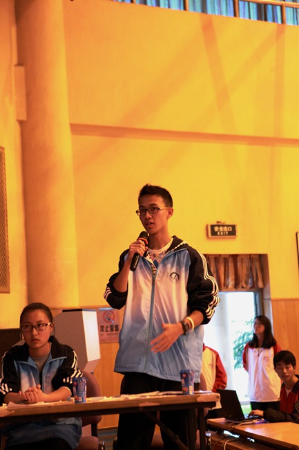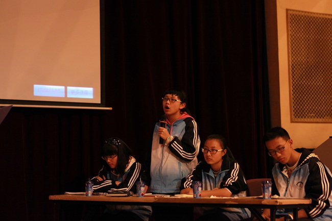 届辩论比赛决赛在报告厅举行,比赛对阵双方是高一