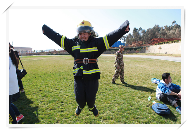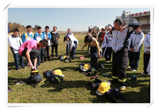 (文:朱锐 图:王倡剑)2014年3月1日,我校高2016届、2015届五十余名同学在学生处的组织下,前往云南省公安消防总队培训基地进行消防安全教育实践活动。对同学们来说,消防既熟悉又陌生,从小学到高中,学校里的消防演练不在少数,但是像今天这样到消防基地亲身学习体验对于多数同学来说还是第一次。刚到那里同学们就被各种新奇的训练设施所震撼、吸引。在教官的指导下,同学们开始体验各种消防项目:在地震后倾斜的房屋里蹑手蹑脚地行走,在烟雾弥漫的地下铁几乎目不能视物。尤其让人印象深刻的是烟雾浓重的通道逃生体验,广播里不时传来惊叫声,灯光闪烁,前路未知,同学们在昏暗的光线中艰难地寻找着安全通道,不时匍匐,不时翻越,极尽腾挪转移。逼真的火灾场景,让同学们真切地体验到了遭遇火情镇定、科学逃生之重要性,几个同学因操作不当还轻微受伤。接下来,教官教我们练习徒手抢救伤者,快速穿着消防衣,匍匐前进,连接水袋等实战技巧。我在想,要想在真正遇到火灾时安全脱险,平时对消防知识的学习可不能马虎噢,同学们都行动起来吧。
