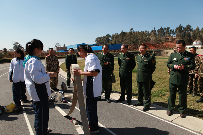 同学们卷水袋、甩水袋的动作受到部队首长的表扬