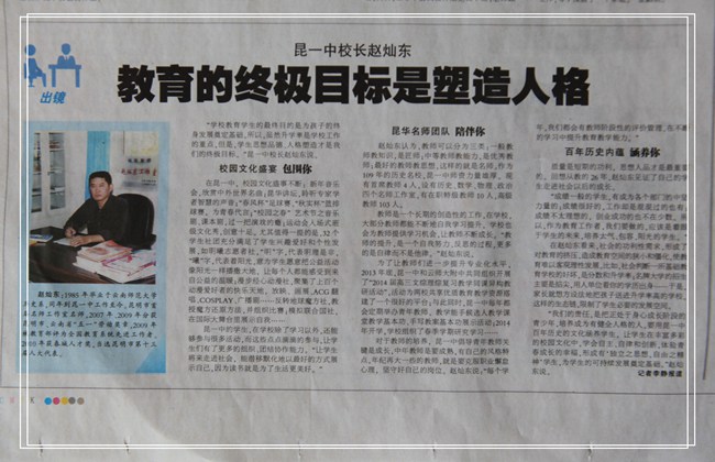 《昆明日报•教育周刊》发表赵灿东校长专访《教育的终极目标是塑造人格》