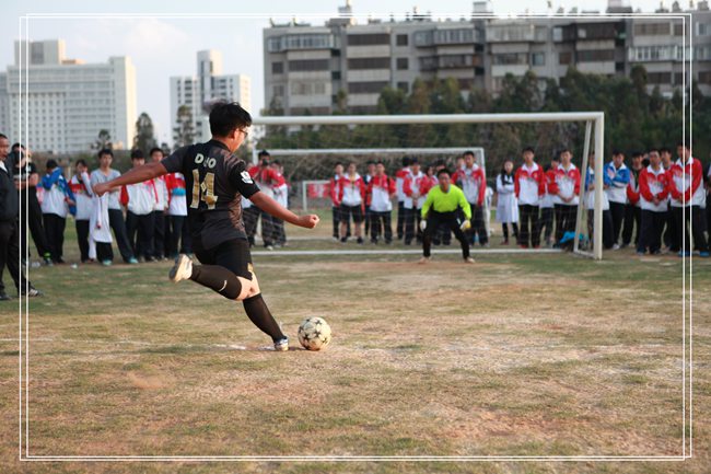 2014年3月20日,“春风杯”足球赛之高2015届决赛波澜起伏,上演戏剧性一幕,冠军、季军争夺战均拖至扣人心弦的点球大战。理九和理十一巅峰对决,终场哨响,双方战成1:1平,比赛被拖入点球大战,最终理九锐不可当,以点球4:3问鼎。季军争夺战,双方展开进球大战,理十三以3个进球领先,同学们都以为比赛已经失去悬念之时,理八却奋起直追,最终艰难将比分扳平,又是点球大战,最终理十三仅罚失一个点球,获得季军,理八屈居第四名。