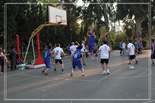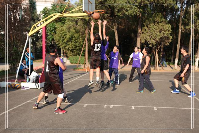 2014年4月15日下午5:20,昆一中2014年春季教职工篮球赛第三场高一年级对阵高三年级,第四场高二年级对阵金岸分校举行,经过激烈的角逐,高三年级、金岸分校分别取得了胜利。两周前第一场高一年级对阵高二年级,第二场行政对阵高三年级已经结束。为丰富我校教职工的课余生活,提高教职工的身心素质、增强体质,增进学校的凝聚力和团队协作精神,引导和激发广大教职工更好的参加体育活动,工会主办、体育组和校团委协办了本次春季教职工篮球赛,5支教职工代表队采用循环赛制。为了让每个球队的运动员都能参加到本次篮球比赛中来,本次比赛特规定第一节和第二节上场队员不得重复参加比赛,如因在比赛中犯规被罚出场或者参赛人员不足五人也只能是造成多打少局面,参加第二节比赛运动员不得参与第一节比赛运动员的替换,同样参加第一节比赛运动员不得参与第二节比赛运动员的替换,第三、四节比赛时本队球员才能自由组合。