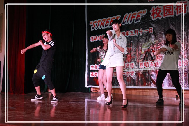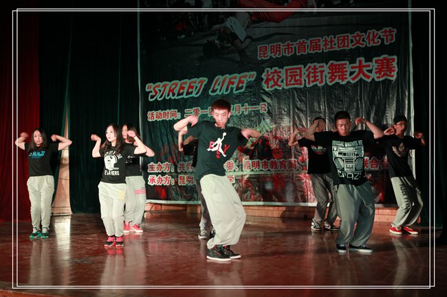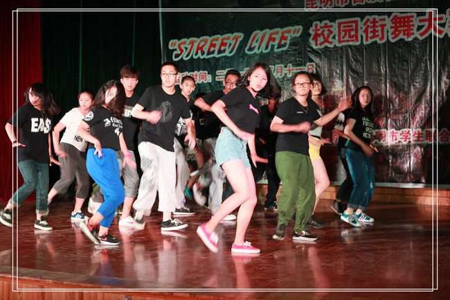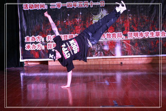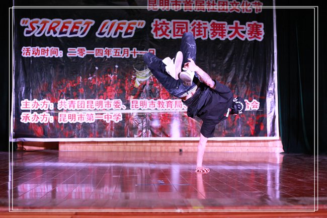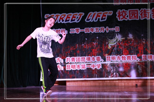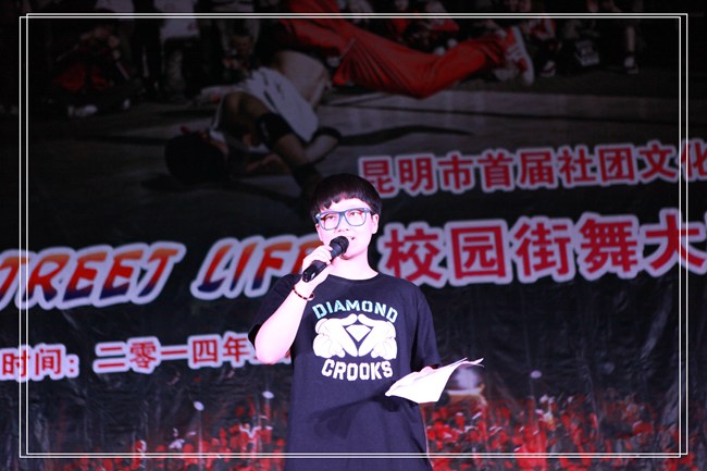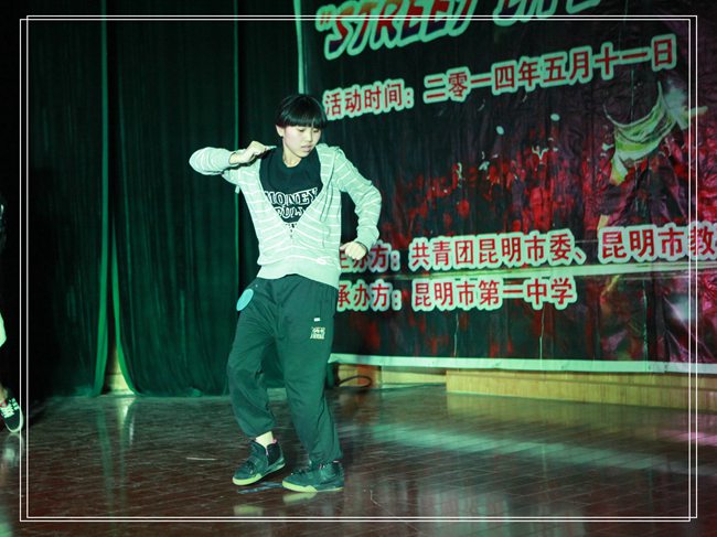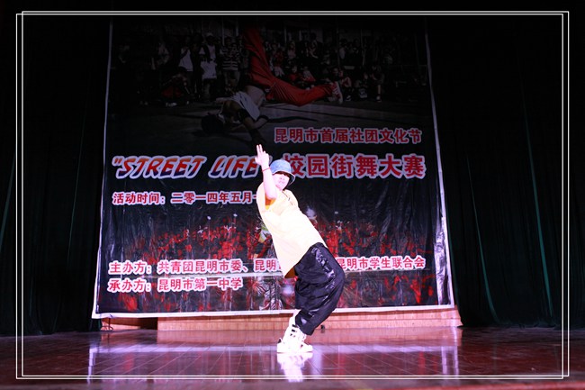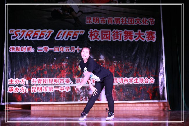 (文:邵馨怡 图:王倡剑)2014年5月11日,昆明市首届社团文化节之“Street Life”校园街舞大赛在我校报告厅举行。全场灯光璀璨,座无虚席,这是一场充满青春活力的视觉盛宴。本次比赛由共青团昆明市委、昆明市教育局、昆明市学生联合会主办,昆一中和昆一中街舞社承办,联袂为同学们带来昆明市乃至云南省内首次校园街舞比赛。本次比赛面向所有在校学生和适龄青少年,比赛的宗旨是“寻找最会跳舞的高中生”,为所有热爱街舞,热爱街头文化的同学们提供一个表现自我的平台,也充分地丰富同学们的课余生活。