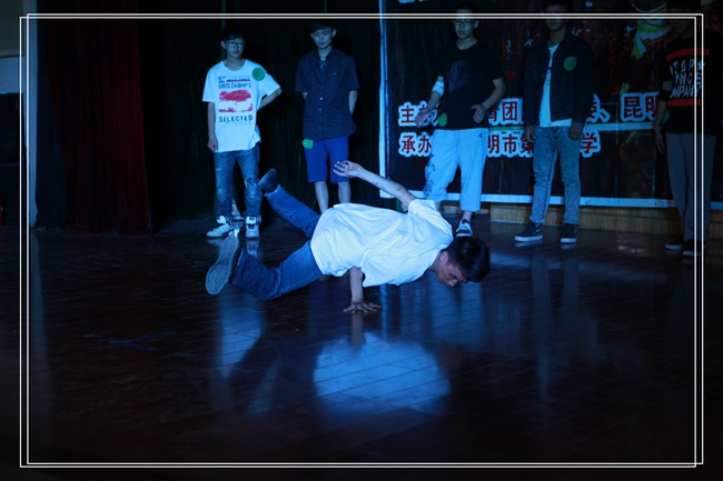 来自不同学校的同学们分别带来了他们街舞社的齐舞表演,技惊四座,一下子点燃了全场的热情。接下来的个人Battle一对一比赛分为Breaking,、Popping、Hiphop 和 Freestyle四个舞种进行了海选, 竞技赛和决赛最终决出了每个舞种的冠军。每个学校的同学们参赛热情高涨,甚至有曲靖和嵩明的同学远道而来代表他们的学校参加了本次比赛。他们用丰富的肢体语言展示了各种高难度的技巧、能力,参赛者的舞技得到了专业评委的大力赞赏,赢得了在场所有观众的阵阵掌声。每一个参赛者都表示十分享受这一次比赛,比赛结束后昆一中街舞社作为承办方也送出了由专业设计师设计的纪念T-shirt.。