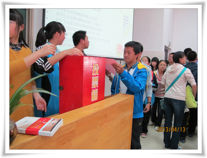 4月13日,在雄壮的国歌声中,我校2013年团员学生代表大会在3号楼多媒体3教室胜利召开了,出席大会的有学校党委副书记、副校长高富英老师;学生处副主任陈永裕老师、张兴虎老师;团委牟洁老师。大会先后邀请高副书记作精彩讲话,校团委书记作2012年度工作报告;校学生会主席作2012年度工作报告;校学生会副主席作2012年度财务报告;表彰2012届校学生会优秀学生干部;再由工作人员宣读本届学生干部的竞选办法后40多名候选人开始顺序发表精彩纷呈的竞选演讲;演讲后,在座的所有代表认真填写选票,慎重的投上自己宝贵一票;最后,大会在活力热情的团歌声中胜利闭幕。
