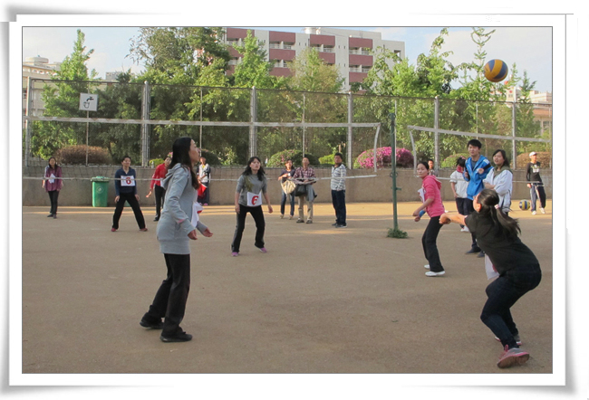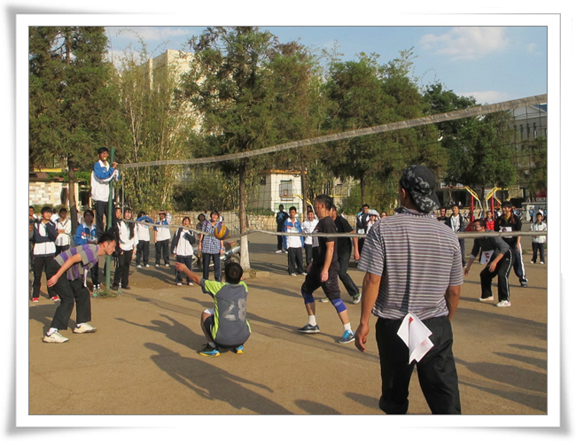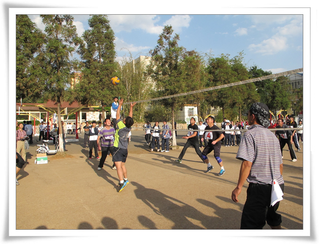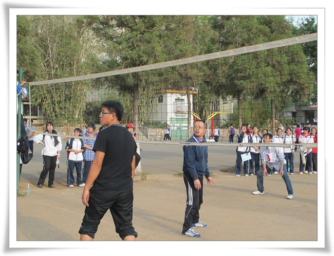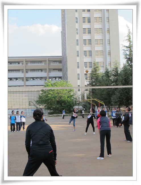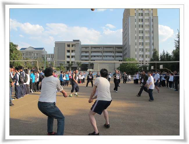 如果你习惯了老师们的正襟危坐、端庄娴静,那么就来排球赛场上看看吧,看他们激情迸发,看她们她们无所羁绊。2013年4月16日始,全校老师共计分为高一、高二、高三、行政四个组循环比赛,角逐冠军。