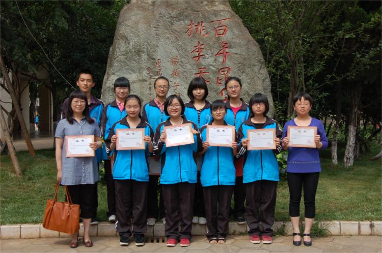 高二年级获奖的同学和指导老师曾汉琼、孙 炜