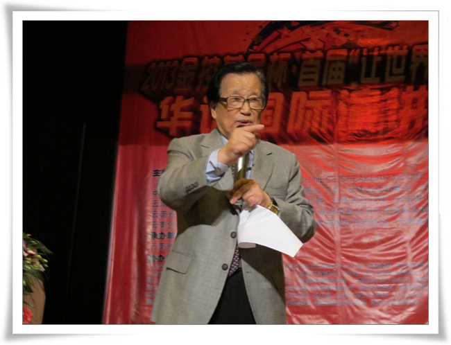 2013年8月10早上九点,首届华语国际演讲大赛开幕式在昆一中科技楼报告厅举行。开幕式最受瞩目和期待的就是有着中国“演讲泰斗”之称的共和国第一代演讲家、84岁高龄的李燕杰老先生亲临现场作《演讲铸魂与中国梦》的专题演讲。受现场观众的热情感染,李老抛开原先准备的演讲思路,给大家带来了一场更加有味道的讲座。李老虽然年届高龄,但声若洪钟,演讲于他已经不是一门艺术,而是一种智慧的感悟和挥洒。演讲结束,全体起立向李老致敬。