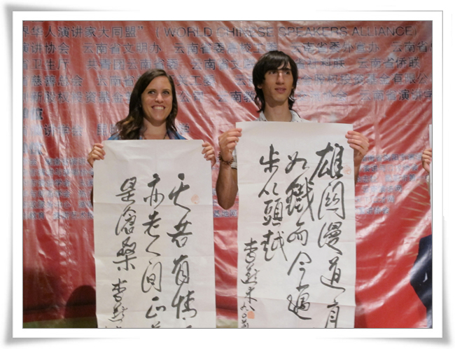 李老向海外选手赠送书法