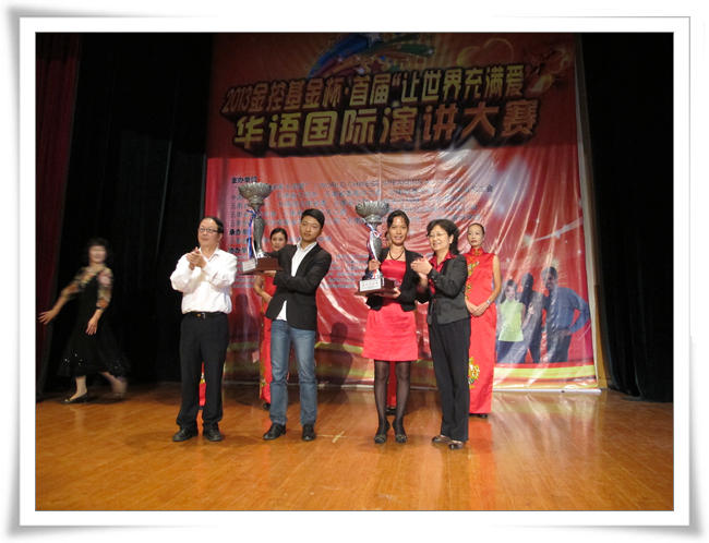2013年8月11日,首届华语国际演讲大赛历经10日下午一点至九点半近八个半小时的复赛,从两百余名复赛选手选拔出的十九名选手于今早进行了总决赛,最终来自广州惠州的许大田以《爱是妈妈做的身上衣》的动情演讲摘取大赛特等奖。我校解绍巍同学荣获一等奖,袁唯、曹倚凡、董薇同学荣获二等奖,赵蕊同学荣获三等奖,李彦佳同学荣获优秀奖,学校荣获团体二等奖以及大赛组委会授予的特别贡献奖。
