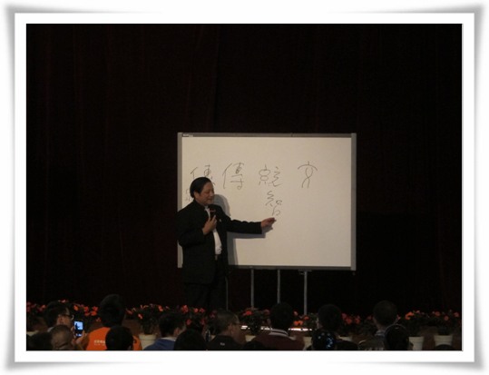 “国学是学问,比如我们的四书五经;而传统文化则是指需要传承的一些文化现象。”讲座一开始,李土生就阐明了国学与传统文化的区别,吸引了师生们浓厚的兴趣。李土生说,中国传统文化博大精深,比如说我们的汉字,其实从文学构造中,我们可以解读出很多人生哲理。如“傳”字,首先是人字旁,然后右上部是惠字头,右下部是寸字,其本意是说,一个人要把文化传承下去,惠及子孙后代,但是要把握好分寸。
