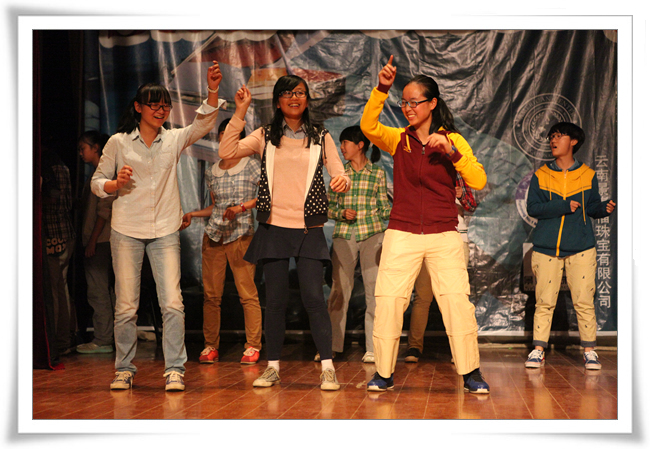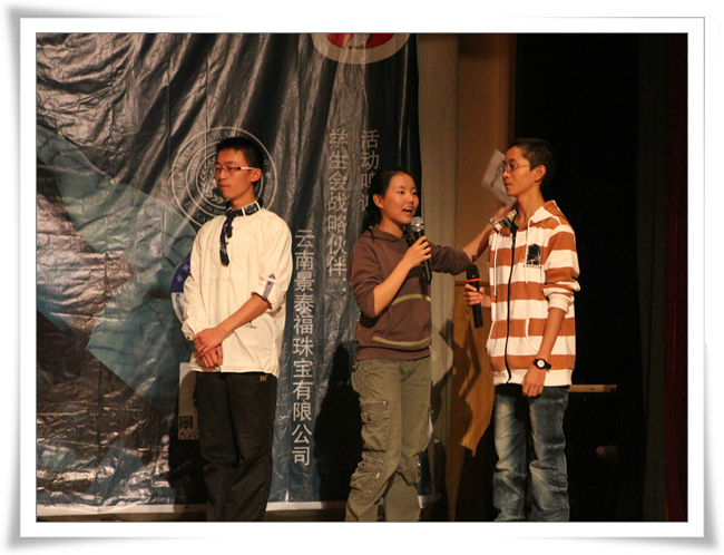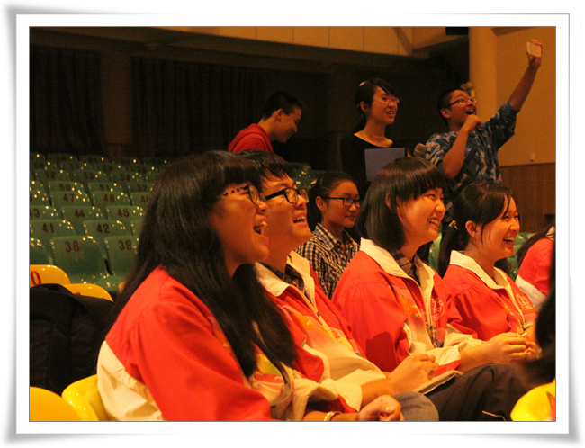 (记者:和赵雅丹 摄影:王倡剑)9月30日晚七点半,校学生会在报告厅举行了欢度国庆联谊活动。该活动旨在借欢乐笑闹之节目,让学生会新成员彼此增进感情,找到家的温馨感觉,促进学生会各部门间的交流与合作,从而使学生会今后的活动更高效地进行。宣传部成员率先带来串烧舞台剧《宣传部的马尾》,欢歌载舞间朝气蓬勃的青春气息扑面而来。随后各个部门相继秀出精心准备的高端大气上档次的节目。社团部的乐器合奏,体育部的歌曲串烧,秘书处的古装舞台剧,内联部的串烧歌舞,外联部的Hiphop齐舞。学习部编排演出的趣味辩论赛《社会更需要学霸还是学渣》使得全场的观众思维活跃起来,文艺部展示的歌舞节目则将文艺气息展现得淋漓尽致。晚会中,学生会主席吴壤西上台与学生会新老干部游戏互动,现场气氛更是欢乐爆棚,团委牟洁老师即兴献唱《红山果》又将晚会推上了一个新高潮。晚会在学生会主席、副主席优美的《我好想你》歌声中完美落幕。晚会虽已结束,同学们激动的心情久久难平。有同学表示“从原来的生疏,到现在的互开玩笑,我们一同经历了成为朋友的过程。”