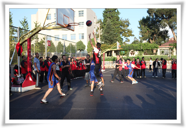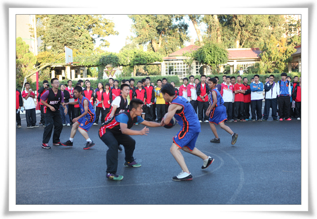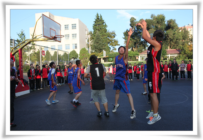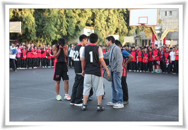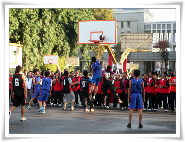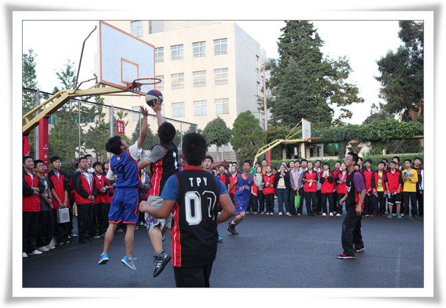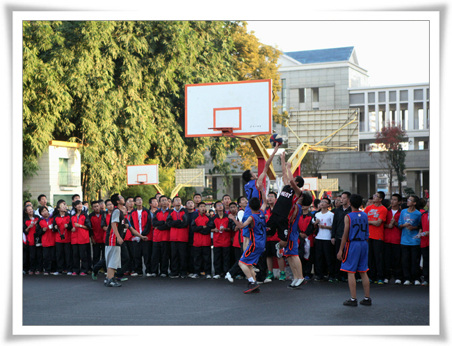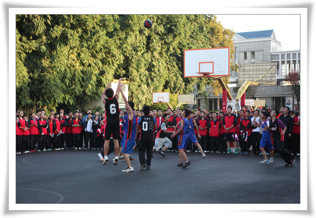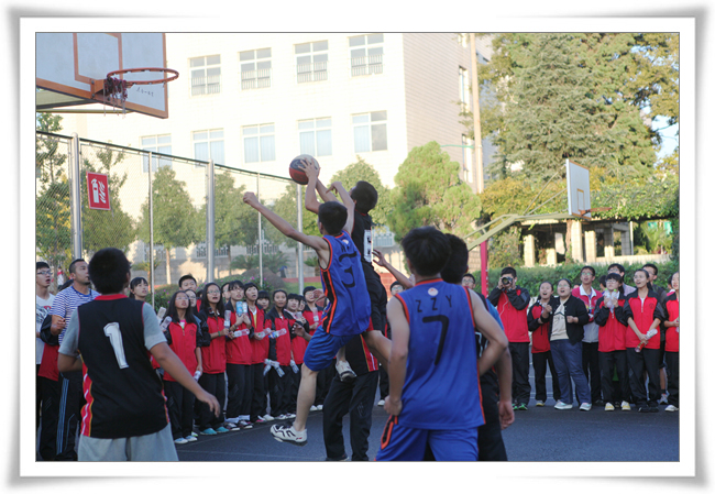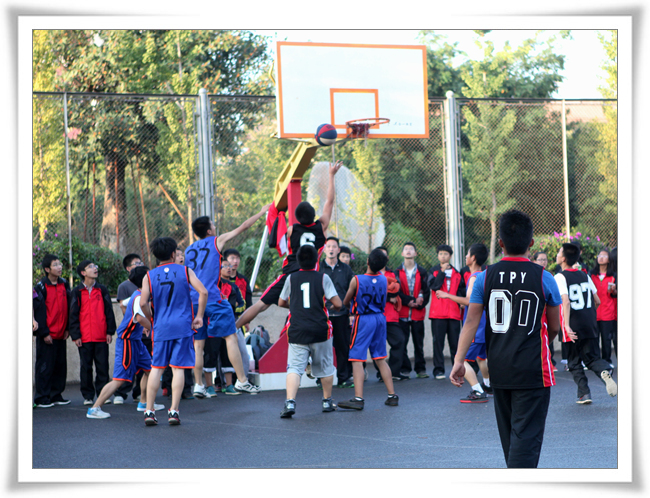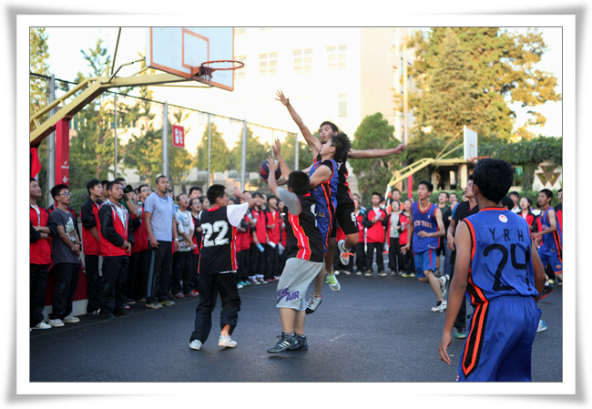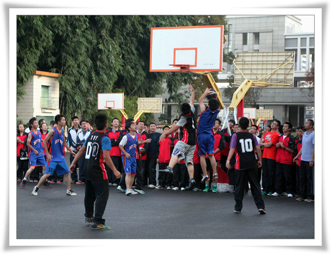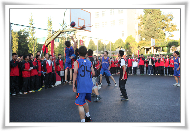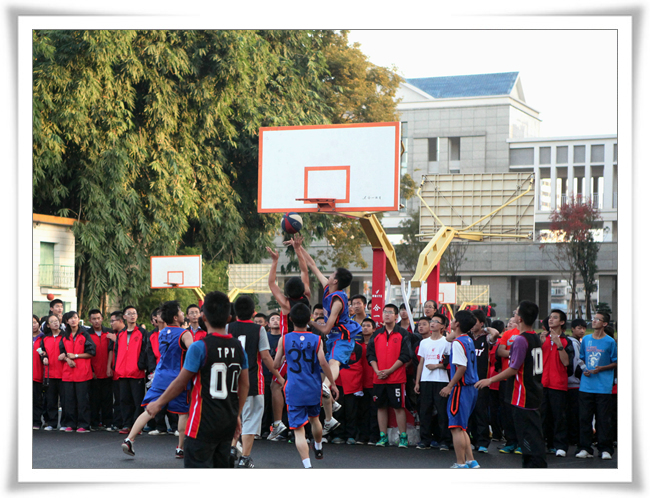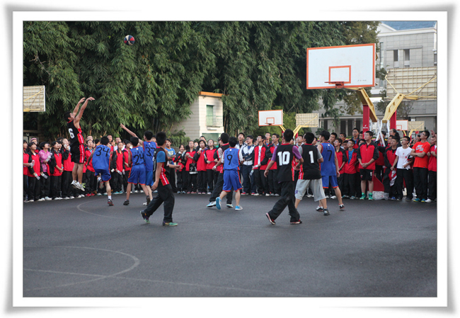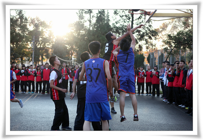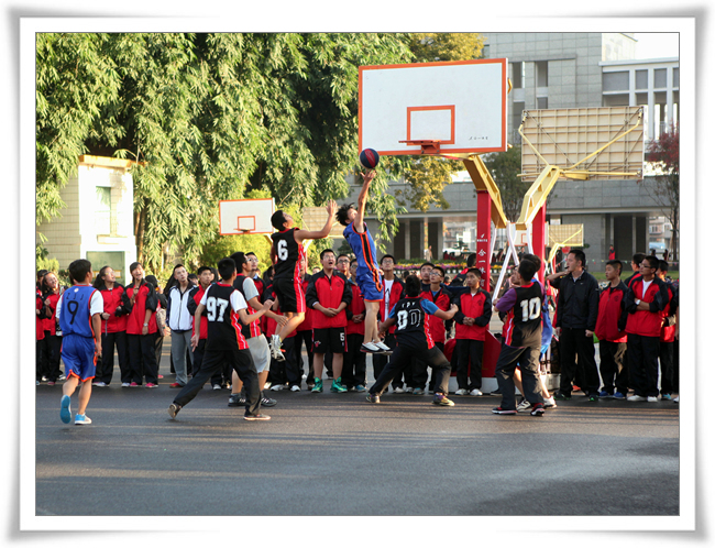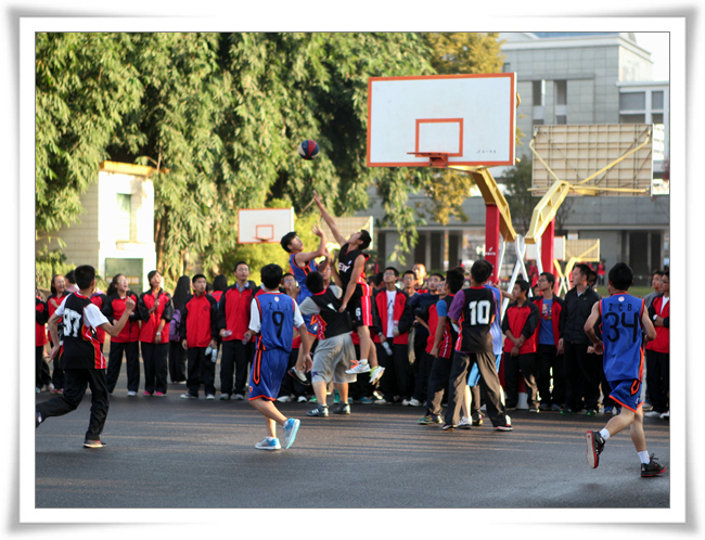 (新闻社记者:李房唏 摄影:王倡剑)2013年10月18日下午五点二十分,静谧的下午时分,篮球场上响起了嘹亮的加油声,这是2016届17班对阵3班的篮球决赛,也是高2016届篮球赛的收官之战。这场比赛也是双方啦啦队之间的较量,17班和3班的啦啦队都热情高昂,鼓足了劲,场上队员的汗水和场下啦啦队的加油声相互交织成了一幅动人的图画,吸引了许多其他班甚至高二高三年级的同学前来观看,场面非常壮观。“球进了!”迎来同学们一阵更加卖力的掌声和加油声。“唉,没进!”换来的却是同学们的鼓励与安慰。双方实力在伯仲之间,拼抢激烈,比分也一直处于胶着状态,甚至一度持平,下半场17班继续开赛以来的神勇表现,最终问鼎。篮球赛不仅仅是一场球员的比赛,锻炼的不仅仅是体魄更是灵魂,更能增加一个班级的凝聚力和进取心。