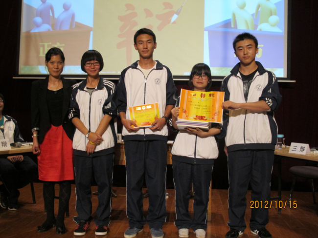 学生工作处主任杨杰文老师、学生工作处副主任陈永裕老师为优胜班级和最佳辩手颁奖