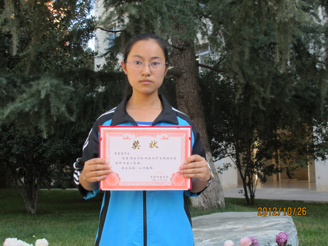 获得一等奖的2014届理7班张雪莲同学
