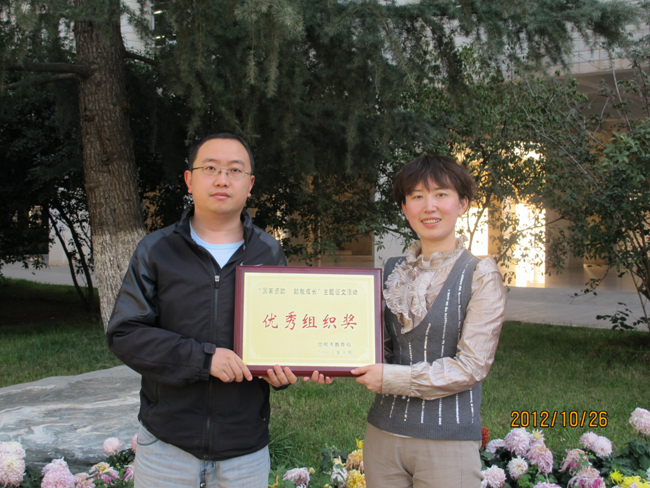 在昆明市教育局举办的“国家资助,助我成长”主题征文活动中,我校2014届理7班的张雪莲同学获一等奖,我校获“优秀组织奖”。