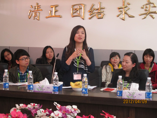 2012年4月9日15:00,香港国民教育沙田区委员会“民族共荣——云南体验之旅”代表团来我校进行交流访问。高富英副校长向香港同行介绍了我校开展心理健康教育以及学生课外活动等方面的情况,并回答了他们关心的问题。党政办杜德祥主任,学生工作处杨杰文副主任、陈永裕副主任参与交流活动。学校心理咨询室的国家二级心理咨询师牟洁老师和来宾就我校开展心理咨询工作进行了交流。