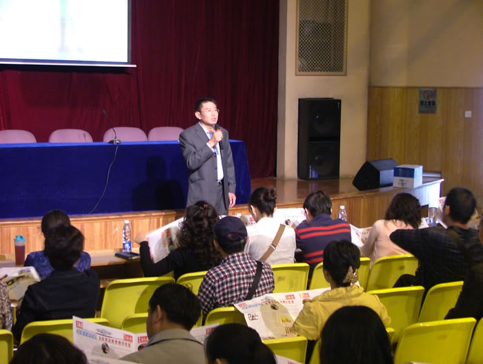 在科技楼报告厅听取赵灿东校长关于学校工作情况的报告