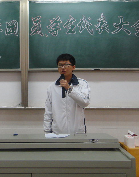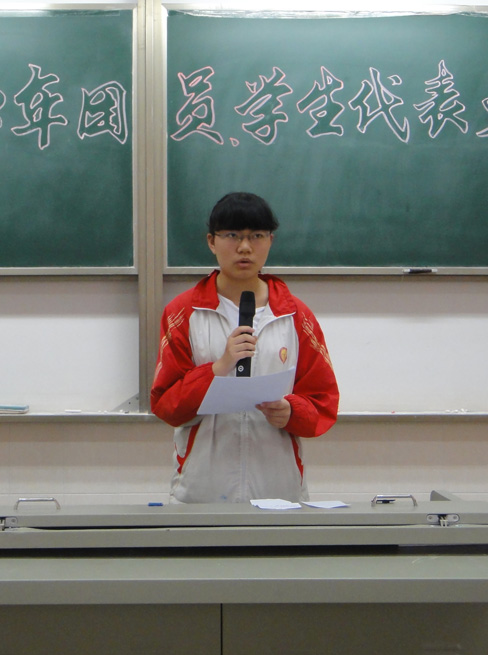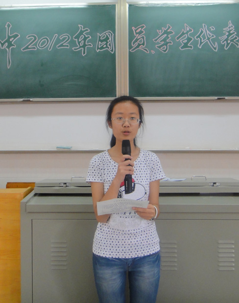 2012年5月6月,迎着五四的春风,我校2012年团员、学生代表大会在学校按时召开了。出席会议的有校党委副书记、副校长高富英老师,团委书记陈永裕老师和团委干事牟洁老师。大会首先请上一届学生会杨焰枭主席做述职报告和财务报告,接下来是请每位候选人进行自我介绍,最后同学们投入公正、负责人的一票,由监票人监督进行结果统计。团学代会,是高中生一项非常重要的政治活动,不仅增强了学生主动参与学校事务的积极性,还为团委学生会增添了新鲜血液。(牟洁)