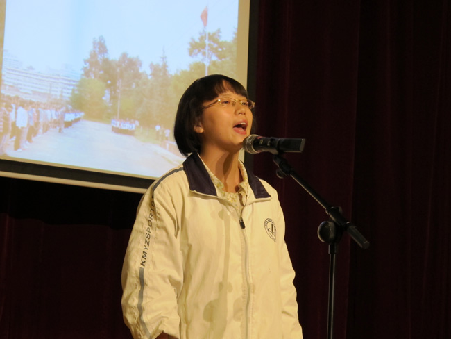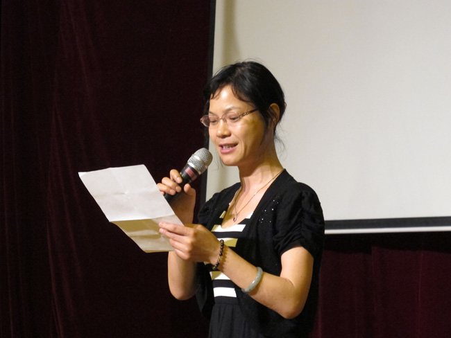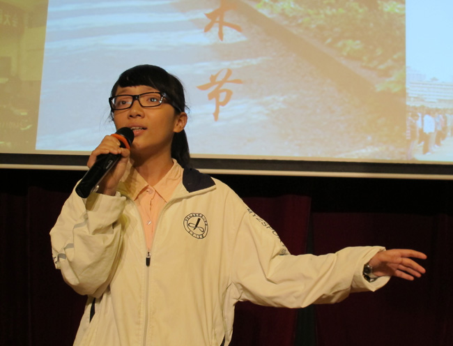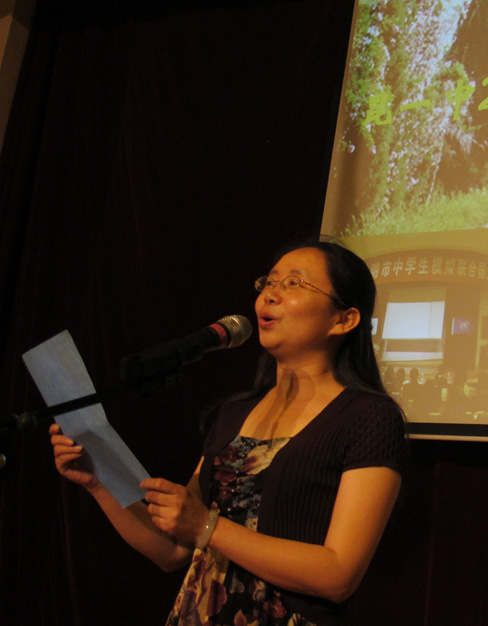 评委:云南省演讲学会常务理事、昆一中副校长高富英老师朗诵自创诗歌