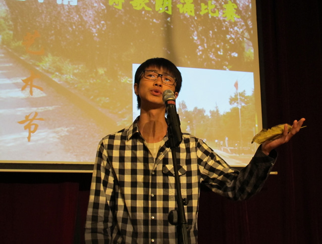 评委:昆明市创建文明城市演讲大赛特等奖获得者、昆三中团委书记李林老师朗诵余光中的诗