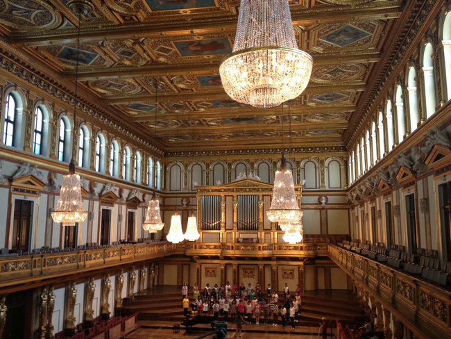 在来自世界各地30个国家的合唱队中,我校合唱队的同学于8月2日晩在世界音乐殿堂金色大厅以出色的表现,获得了维也纳童声合唱团总监维尔特先生的高度赞赏,我校合唱团被大会组委会授予合唱节举办以来的最高奖项“金色和平奖及奖杯”(唯一一个最高奖项)。