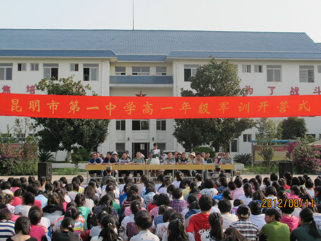 2012年8月11日,昆一中2015届军训在中国人民解放军昆明民族干部管理学院干部轮训一队举行隆重的开营仪式。1000余名新生将进行为期7天的军训。
