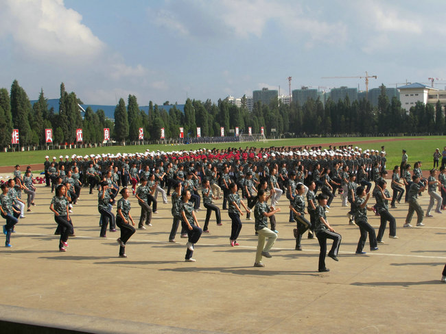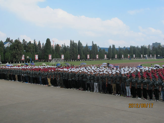 2012年8月17日,昆一中2015届为期一周的军训圆满结束,上午九点,在解放军昆明干部民族学院干训一队举行隆重的阅兵仪式。学生方队分别表演了格斗术、军体拳、队列基础动作、紧急集合、韵律操、拉歌,精彩的表现,博得到场学校领导、家长的热烈掌声。