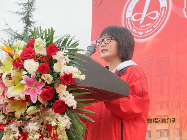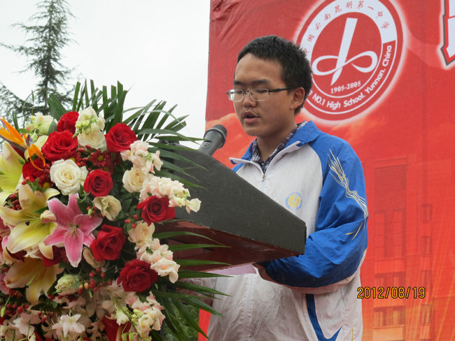 2013届学生代表2012届文5班李晴川同学(以文科云南省第三名的成绩考取清华大学)发表感言