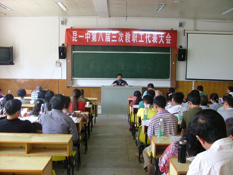 2012年8月18日,昆一中第八届三次教代会在科技楼多媒体教室落下帷幕。本次教代会问题和反思意识浓厚,与会代表积极献言献策,发现不足,主动探求解决方法。学校党委书记王泉在动员报告中对学校教代会和工会提出了几点希望和要求:要继续发挥和落实好教代会的各项职能,行使好审议通过权和评议监督权,提高学校决策的科学性。作为学校教代会,