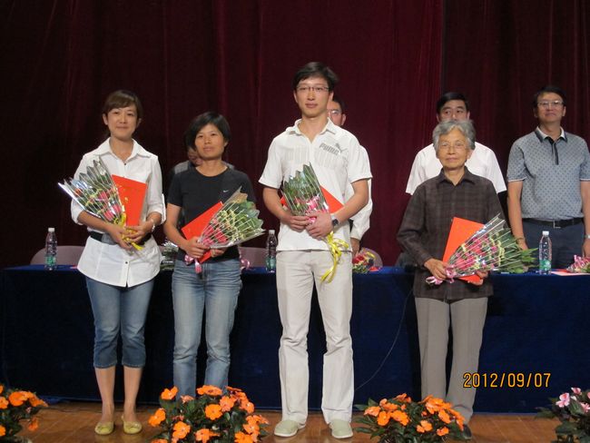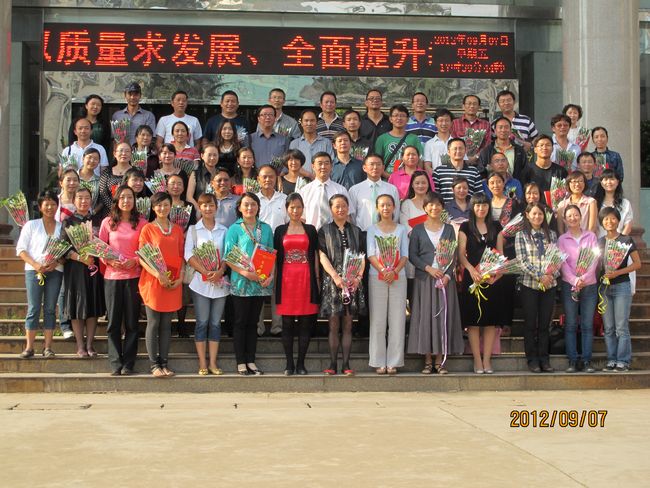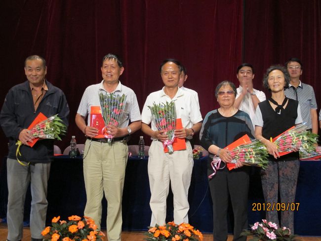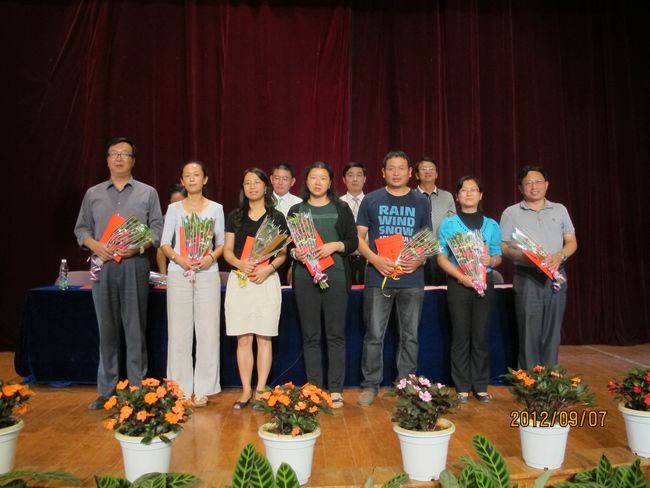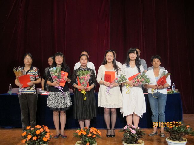 2012年9月7日下午四点,在第二十八个教师节来临之际,昆一中教师节表彰大会隆重举行。大会由党委副书记、副校长高富英老师主持,党委书记王泉老师宣读学校表彰决定,校领导给获奖教师颁发荣誉证书和鲜花。随后进行了新教师拜师仪式,这是学校多年的传统,目的在于发挥昆一中骨干教师的传、帮、带作用,促进青年教师快速、健康成长。赵灿东校长在问候和祝福之余,希望全体教师把师德修养放在更加突出的位置,更加自觉地坚持进一步完善自身知识结构。教育是一项崇高的事业,需要我们甘于奉献;教育是一门严谨的科学,需要我们勇于探究;教育是一门多彩的艺术,需要我们开拓创新;教育是一个系统的工程,需要我们共同参与,齐心协力。一中的发展靠大家,在新的征途中,让我们携手共进,共创辉煌!